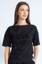 Футболка свободного кроя из вискозного полотна. Рукав втачной, планка по горловине. Вырез круглый. Низ изделия и рукавов имеют плоский шов.