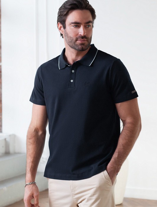 Футболка поло с плетеным воротником на пуговицах из эластичного хлопка