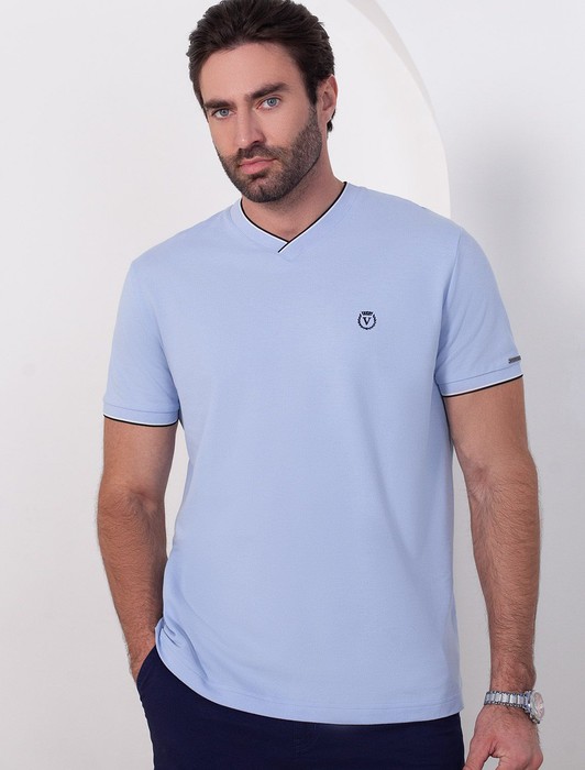 Состав: 95%Хлопок 5%ПУ Плотность: 170 Г/м2Футболка голубого цвета с аккуратным V-образным вырезом выполнена из премиального хлопка с эластаном плотностью 200 Г/м2. Высококачественный эластичный хлопок обеспечивает мягкость, воздухопроницаемость и идеальную посадку на любую фигуру и размеры, включая 58 размер. Классический прямой крой футболки подчеркивает фигуру, но не сковывает движений. Элегантный небольшой V-образный вырез с контрастной полосой визуально удлиняет шею, а минималистичная вышивка на груди в виде логотипа бренда добавляет изысканности и индивидуальности, не перегружая образ. Эта базовая футболка - идеальный баланс комфорта и стиля для современного мужчины, легко сочетается с разными низами, создавая образ от кэжуал до более элегантного. Стильная футболка подходит как для повседневной носки, так и для создания более нарядных образов.