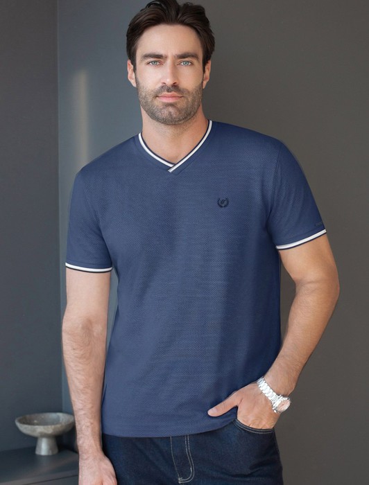 Футболка с V-вырезом из премиального хлопка с эластаном
