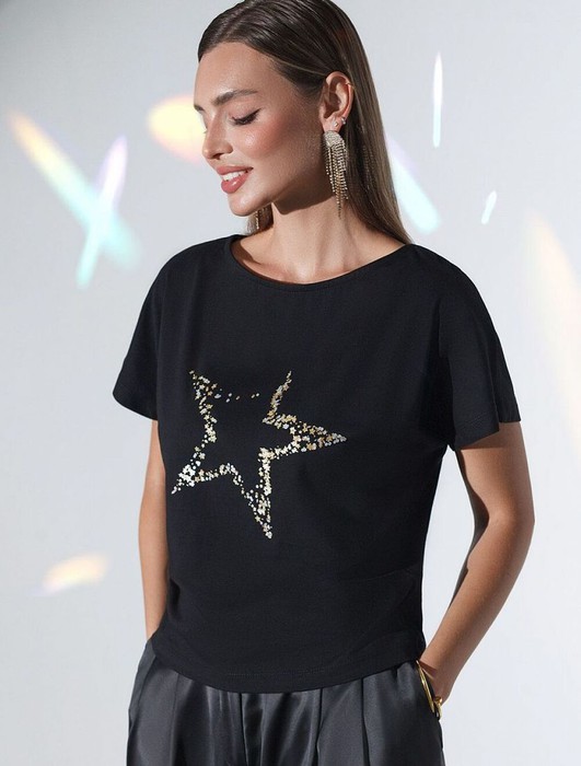 Совместные покупки Уфа Женская одежда Футболки — Футболка Vilatte D49.133 черный_star