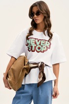 Эта нарядная футболка подходит для создания образа на каждый день и идеально подойдет на выход. Модель не мнется, что делает ее практичным вариантом для активных женщин, которые ценят стиль и удобство.