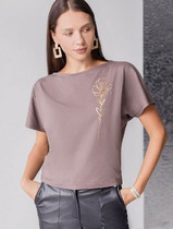 Совместные покупки Уфа Женская одежда Футболки — Футболка Vilatte D49.146 кофейный меланж_pomegranate