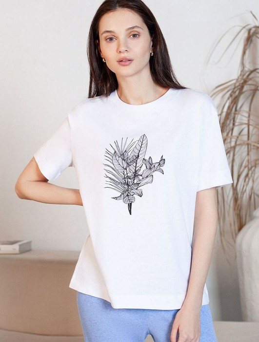 Совместные покупки Уфа Женская одежда Футболки — Футболка Vilatte D49.158 белый_тропики