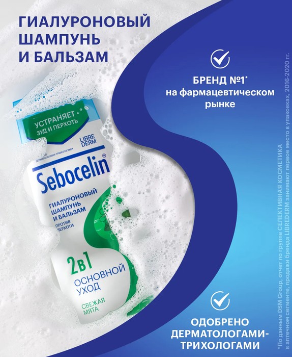 Совместные покупки Уфа Косметика и парфюмерия Шампуни — Гиалуроновый шампунь 2 в 1 против перхоти Свежая мята Librederm