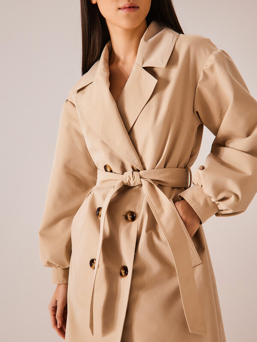 Классический двубортный плащ без утепления. Воротник с лацканами.