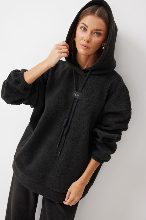 Джемпер прямого силуэта из комфортного трикотажного полотна. Горловина обработана капюшоном. Рукав со спущенной линией плеча, по низу на резинке. По низу джемпера притачной пояс. По переду декоративная нашивка и шнур. Обращаем ваше внимание, что фурнитура может отличаться от фото.