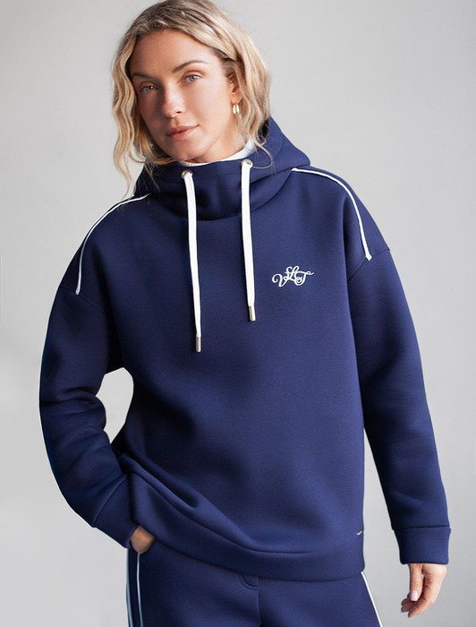 Состав: 80%Хлопок 20%ПЭ Плотность: 320 Г/м2Уютное худи темно-синего цвета с цельнокроенным капюшоном и спущенной линией плеча создано для комфорта в холодную погоду. Модель выполнена из премиального футера трехнитки с мягким начесом, что обеспечивает дополнительное тепло и приятные ощущения при носке. Глубокий капюшон дополнен шнуром для регулировки объема, что обеспечивает отличную защиту от ветра и холода, а серебристая фурнитура добавляет стильный акцент к современному худи. Элементы дизайна — минималистичная вышивка с логотипом бренда и тонкие онтрастные лампасы — делают худи более выразительным без перегруженности деталями, сохраняя эстетичность и современный вид. Эластичные манжеты на рукавах обеспечивают дополнительную защиту от продувания, способствуя сохранению тепла внутри. Натуральный хлопок гарантирует дышащий эффект, позволяя сохранять оптимальный микроклимат тела даже при длительном ношении. Благодаря эластану в составе повседневное худи подходит для активного отдыха, вы будете чувствовать себя свободно в любой ситуации. Представлены большие размеры, что позволяет выбрать подходящий вариант для разных типов фигуры, обеспечивая комфортную посадку. Подойдет девушкам плюс сайз, в этом теплом джемпере вы будете чувствовать себя уверенно. Универсальный дизайн гармонично сочетается с повседневной одеждой — джинсами или спортивными штанами, вы можете составить комплект с брюками D44.158 и D44.159. Создайте расслабленный образ без лишних усилий с помощью этого стильного худи! Сочетается в костюме с брюками D44.159