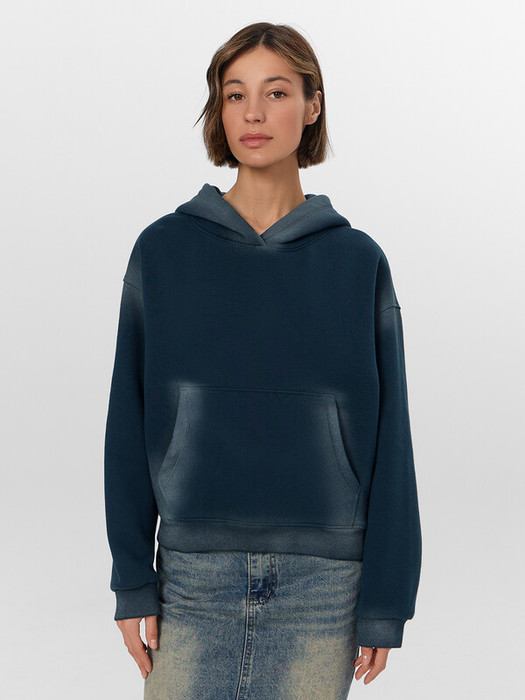 Рукав втачной, длинный, спущенный. По низу изделия и рукавов пояс и манжеты из рибаны. Худи с капюшоном и накладным карманом спереди. На краях капюшона, кармана, пояса и манжетов потертости с микронадрывами (как декор).