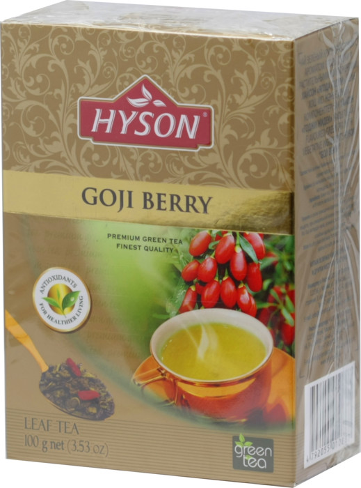 Состав:Зеленый чай Хайсон "Ягоды Годжи" 100г цейлонский зеленый крупнолистовой чай с добавлением Ягод Годжи.