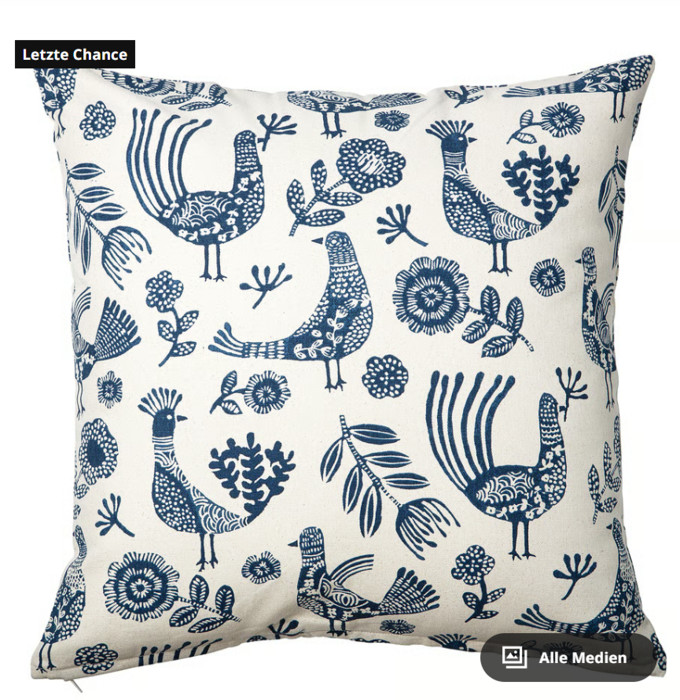 ikea KRUTBRNNARE Kissenbezug, natur blau/Vgel Blumenmuster, 50x50 cm