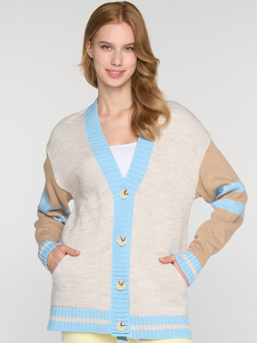 Кардиган NewVay 7242-14127 холодный голубой/св.бежевый/латте