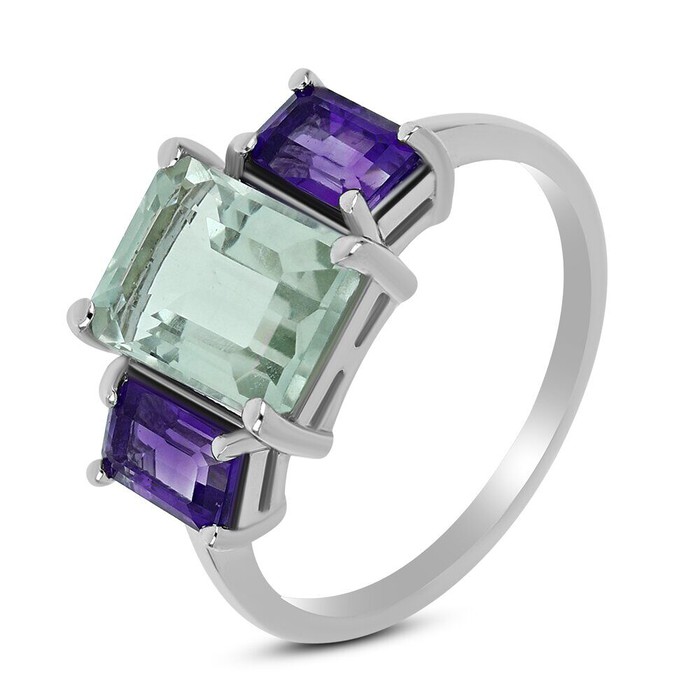 Кольцо, арт.657781 Серебро Серебро 925, р. 19, 2,82 гр., аметист , зеленый аметист