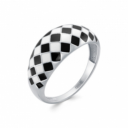 Кольцо эмаль черная/белая родированное серебро 925*