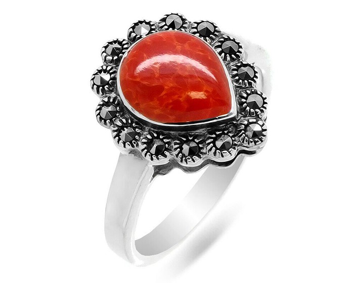 Совместные покупки Уфа Ювелирные украшения и бижутерия Кольца — Кольцо, коралл пресс. , марказит, SL-AGA80
