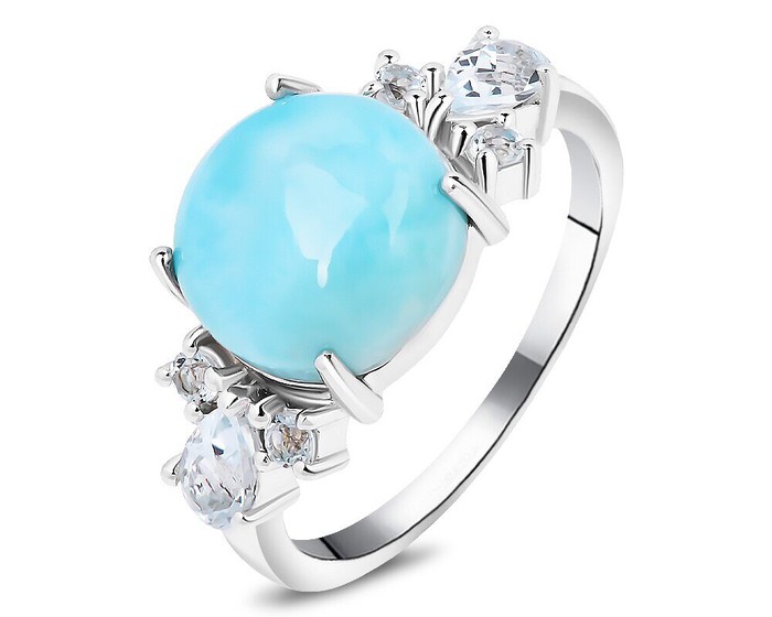 Кольцо, арт.658363 Серебро Серебро 925, р. 17, 3,19 гр., ларимар , топаз