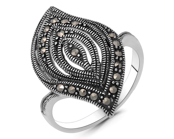 Вес: 6.07 г Вставка: Марказит Цвет камня: Серый Производство: Таиланд Покрытие: Оксидирование Размер колец: 19.520.521.522 Количество: 12Кольцо, арт.656412 Серебро Серебро 875, р. 20.5, 6,07 гр., марказит