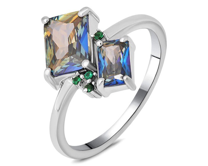 Кольцо, арт.656759 Серебро Серебро 925, р. 17, 2,76 гр., мистик кварц синий , наноизумруд