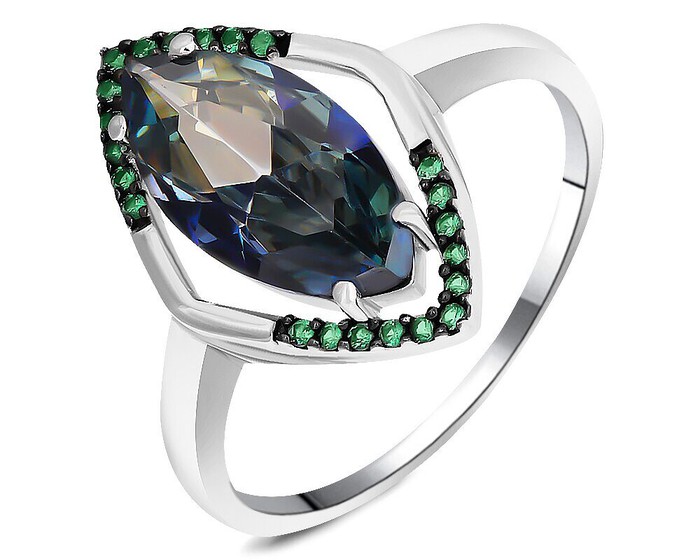 Кольцо, арт.658043 Серебро Серебро 925, р. 19, 2,7 гр., мистик кварц синий , наноизумруд