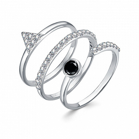 Кольцо с фианитом родированное серебро 925*