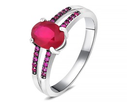 Кольцо, 1 рубин корунд овал 7х9 мм/2.23 ct. , 2 рубин корунд овал 4х6 мм/1.15 ct