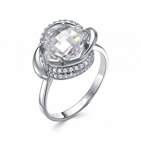 Кольцо с фианитом родированное серебро 925*