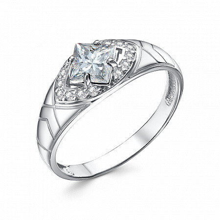Кольцо с фианитом родированное серебро 925*