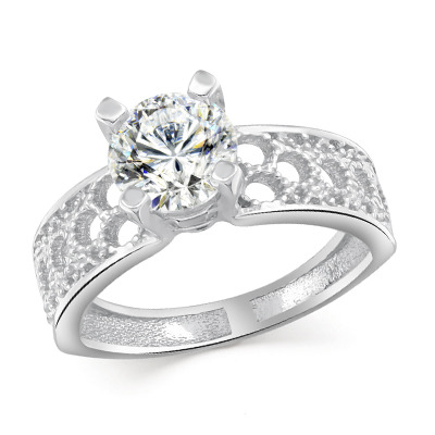 Кольцо с фианитом родированное серебро 925*