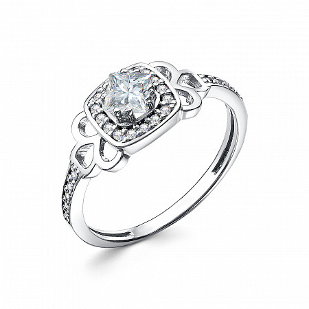 Кольцо с фианитом родированное серебро 925*