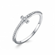 Кольцо женское из серебра родированное - Крест