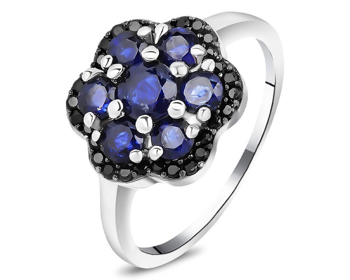 Кольцо, арт.658367 Серебро Серебро 925, р. 17, 2,57 гр., сапфир корунд , шпинель