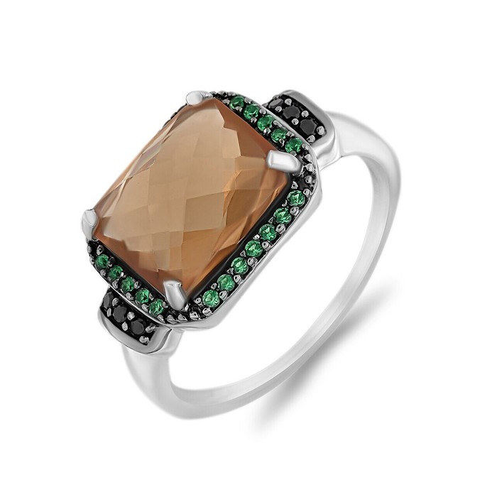 Кольцо, арт.654173 Серебро Серебро 925, р. 17.5, 3,24 гр., султанит , шпинель , наноизумруд