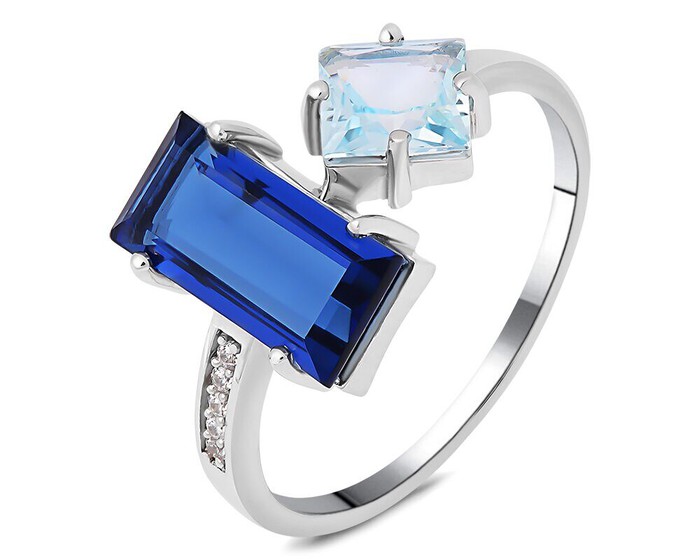 Кольцо, арт.656744 Серебро Серебро 925, р. 18.5, 2,66 гр., танзанит выращ. , топаз