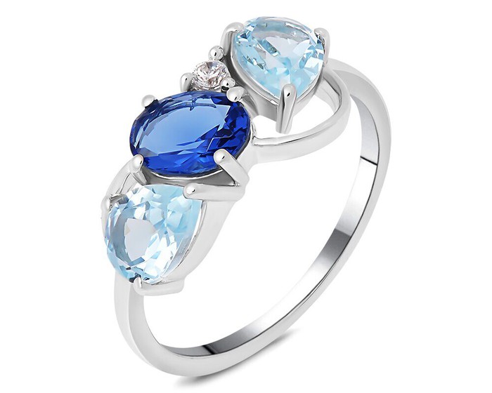 Кольцо, танзанит выращ. , топаз, Мальта