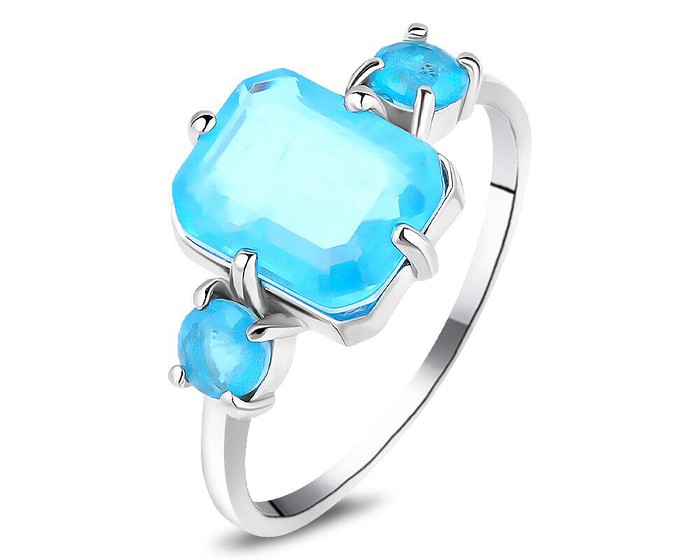Кольцо, турмалин лазурный выращ., Арте