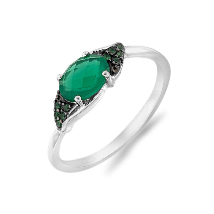 Кольцо, арт.654221 Серебро Серебро 925, р. 17, 1,52 гр., зеленый агат , наноизумруд