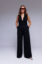 Комбинезон свободного силуэта со спущенным плечом и застежкой на потайную тесьму молнию с переди. Вырез горловины круглый. Рукав втачной длинный. В боковых швах действующие карманы.