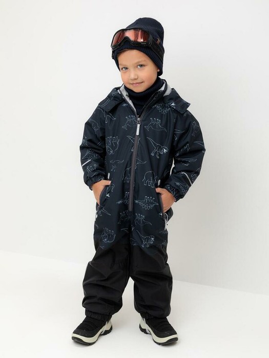 Демисезонный комбинезон для мальчика с утеплителем SEE®: 120 г/м2. Выполнен из мембранной ткани с дополнительной тефлоновой обработкой. Данный вид обработки предохраняет изделие от загрязнения и лучше отводит влагу. Подклад из 100% полиэстра. У изделия удлиненная молния для легкого одевания с защитой подбородка. Утяжка по спинке со стопперами. Несъемный капюшон имеет эластичную резинку для лучшего прилегания. По низу рукавов эластичные манжеты. По бокам два кармана на молнии. Для фиксации комбинезона используются съемные силиконовые штрипки. Во всех изделиях верхнего ассортимента для безопасности ребенка предусмотрены светоотражающие элементы.
