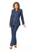 Комплект из легкой костюмной ткани.Жакет свободного силуэта с цельнокроеными рукавами, центральной застежкой на одну пуговицу и удобными функциональными карманами по переду.Воротник отложной с лацканами.Брюки свободного прямого силуэта с высокой посадкой и эластичной резиной по поясу.
