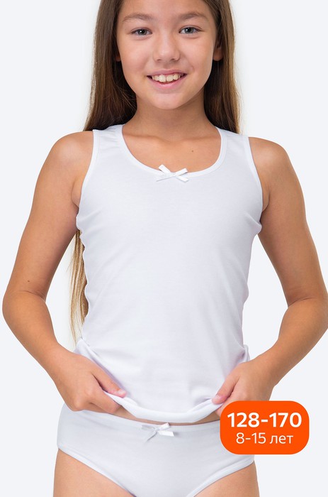 Нежность и забота в каждой нити! Детский набор из майки и трусов слипов для девочки и девочек-подростков выполнен из мягкого хлопка. Базовый комплект для детей представлен в классическом белом цвете и украшен милым атласным бантиком.
