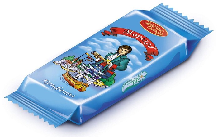 Конфеты «Мореход» – Гулливер среди конфет. Широкие пластины тонких вафель, прослоенные шоколадным пралине и покрытые гладкой глазурью. Крупные, хрустящие, плотные конфеты с насыщенным вкусом какао и тонкими нотками ванили. Внушительный размер и красивая обертка делают конфеты «Мореход» отличным сувениром.