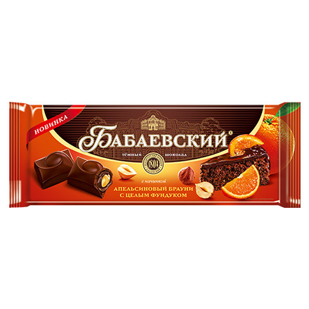 Насыщенный вкус легендарного «Бабаевского» шоколада дополнен ароматом цитрусов и напоминает вкус любимых пирожных брауни. В плитку добавлены ядра целого фундука. Трио - темный шоколад, апельсин и орехи - создают яркое сочетание вкуса, в который невозможно не влюбиться.