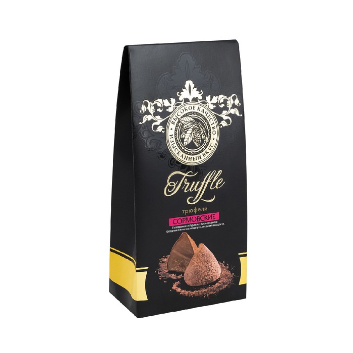 Конфеты «Трюфели» от Сормовской кондитерской фабрики – ароматные шоколадные купола, усыпанные невесомой какао-пудрой в привлекательной упаковке. Нежный шоколадный крем с плотной текстурой тает во рту. Прекрасное дополнение к чаю и кофе.