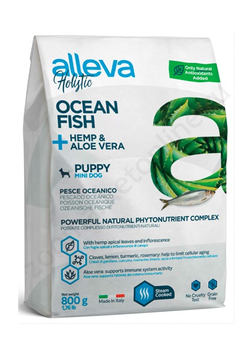 Состав: дегидратированная океаническая рыба (40%), свежая океаническая рыба (20%), батат, рыбий жир, гороховый крахмал, волокна гороха, корень цикория (источник инулина и ФОС), подорожник, инактивированные сухие пивные дрожжи (источник МОС), зеленогубчатый моллюск (Perna Canaliculus – источник глюкозамина), дикальций фосфат, хондроитин сульфат, конопля посевная (верхние листья – 0,10%, соцветия – 0,005%), Алое вера (0,10%), розмарин лекарственный, куркума длинная, гвоздика, лимон (Rosmarinus officinalis, Curcuma longa, Eugenia caryophyllus, Citrus sp.) - (0,05%), сок юкки. Добавки на 1 кг Витамин А (3a672a) – 24000 МЕ, Витамин D3 (3a671) – 1320 МЕ, Витамин Е (3а700) – 720 мг, Витамин B1 (3a820) – 9,60 мг, Витамин B2 – 60 мг, Витамин B6 (3a831) – 60 мг, Витамин B12 – 0,12 мг, Ниацинамид (3а315) - 168 мг, Биотин (3a880) - 9,60 мг, Фолиевая кислота (3a316) - 2,40 мг, D-пантотенат кальция (3a841) - 60 мг, Витамин С (3a300) - 180 мг, Бета-каротин (3a160(a)) - 60 мг, Холина хлорид (3a890) - 1700 мг, Цинк (3b6.10) (Хелат цинка с метионин гидрокси-аналогом) - 120 мг, Марганец (3b5.10) (Хелат марганца с метионин гидрокси-аналогом) - 30 мг, Железо (3b106) (Железа (II) хелат аминокислоты гидрат) - 120 мг, Медь (3b4.10) (Хелат меди с метионин гидрокси-аналогом) - 12 мг, Селен (3b8.12) (селенометионин из пекарских дрожжей CNCM I-3399 (деактивированные селеновые дрожжи)) - 0,50 мг, DL-метионин (3c301) - 3000 мг, Таурин (3a370) - 1000 мг, L-карнитин (3a910) - 500 мг. Специальные добавки: экстракт розмарина, экстракт зеленого чая. Антиоксиданты: экстракт токоферолов натурального происхождения. Гарантированный анализ сырой протеин – 34,00%, сырой жир – 16,00%, сырая клетчатка – 3,00%, влага – 9,00%, сырая зола – 8,40%, крахмал – 24,00%, Кальций – 1,50%, Фосфор – 1,20%, Натрий – 0,55%, Омега-6 – 1,70%, Омега-3 – 2,40%, докозагексаеновая кислота (DHA) - 0,60%, эйкозапентаеновая кислота (EPA) - 0,90%, глюкозамин – 1000 мг/кг, хондроитин сульфат – 1100 мг/кг. Энергетическая ценность 3764 ккал/кг, 15,8 МДж/кг (33% от белка, 38% от жира).