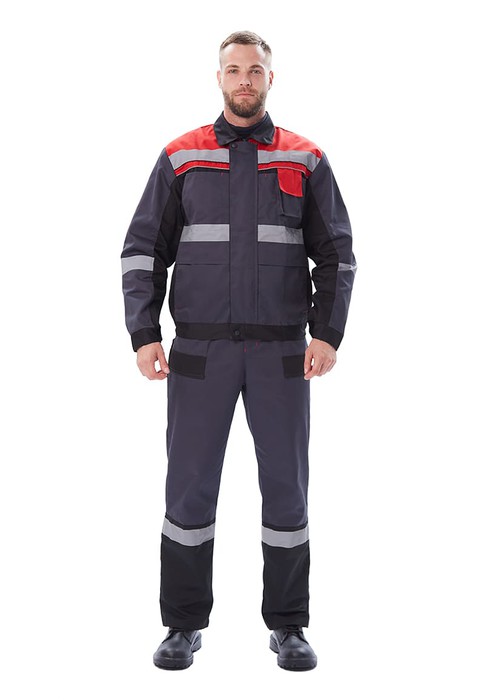 Костюм трехцветный, состоит из куртки и полукомбинезона. Куртка укороченная с притачным поясом на резинке с супатной застежкой на молнию. По кокеткам, полочкам, спинке, рукавам и брючинам расположены световозвращающие полосы, что позволяет использовать костюм в условиях плохой видимости. На куртке множество функциональных карманов, в том числе карман для средств связи с клапаном на липучке.