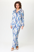 Костюм состоит из прямых свободных брюк с двумя карманами и толстовки оригинального кроя с удлиненной спинкой. Рукав на спущенном плече.