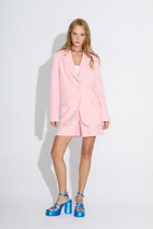 Женский комплект спортивного костюма. Свитшот, полочка и спинка доходят до линии бедер. В верхней и нижней частях полочки и спинки располагаются фигурные вставки контрастного цвета. Горловина обработана обтачкой в цвет основного материала, низ - поясом из рибаны. Рукава рубашечного покроя длиной до запястья, со вставками из ткани отделки, с манжетами из рибаны в цвет основного материала. Брюки спортивные прямые. Нижний срез обработан манжетами из рибаны. По боковым швам лампасы из ткани контрастного цвета шириной 4 см. Верхний срез обработан притачным поясом с эластичной тесьмой шириной 3 см и шнуром. Имеются боковые карманы на передних половинках.