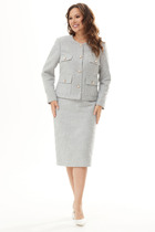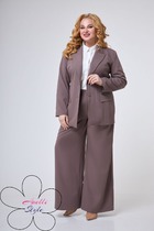 Комплект состоит из кофты и брюк. Кофта свободного силуэта, с округлой горловиной, по рукавам и по низу кофты - широкие манжеты. Брюки прямые, на поясе, с декоративным шнурком черного цвета. Брюки имеют вставки из широких лампасов черного и молочного цветов. Обработка карманов у брюк - отстрочка 0,5 см.
