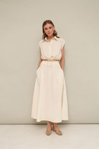 Элегантный домашний костюм. Свободные шорты с карманом, пояс на резинке. Блуза со спущенным плечами, обработанными кружевом с декоративными разрезами.