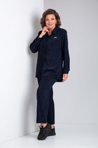 Молодежный костюм с брюками в горошек и однотонной футболкой в цвет горошка. Небольшой рукав. На полочке интересный принт в виде девушки с огромным букетом роз.